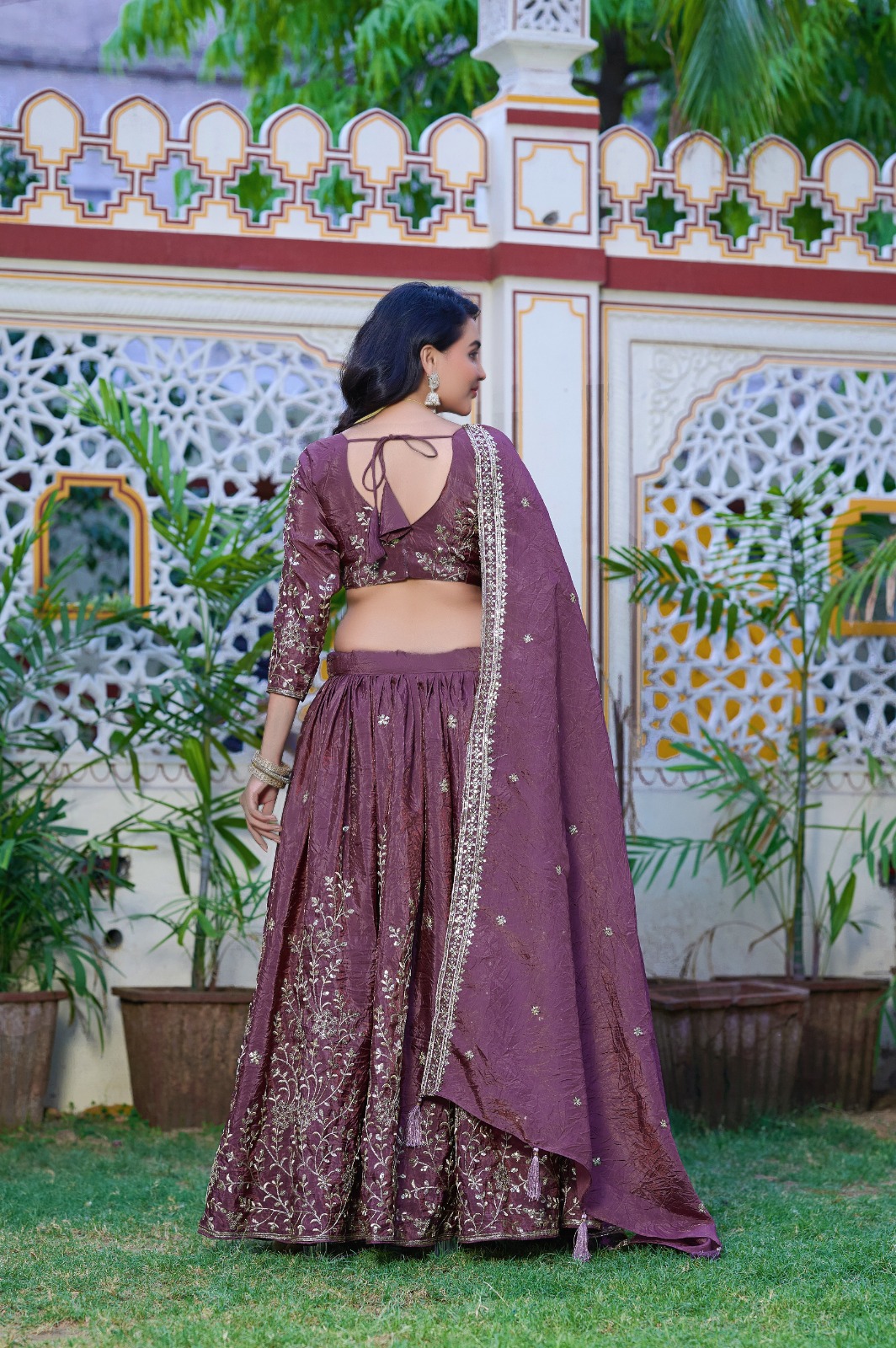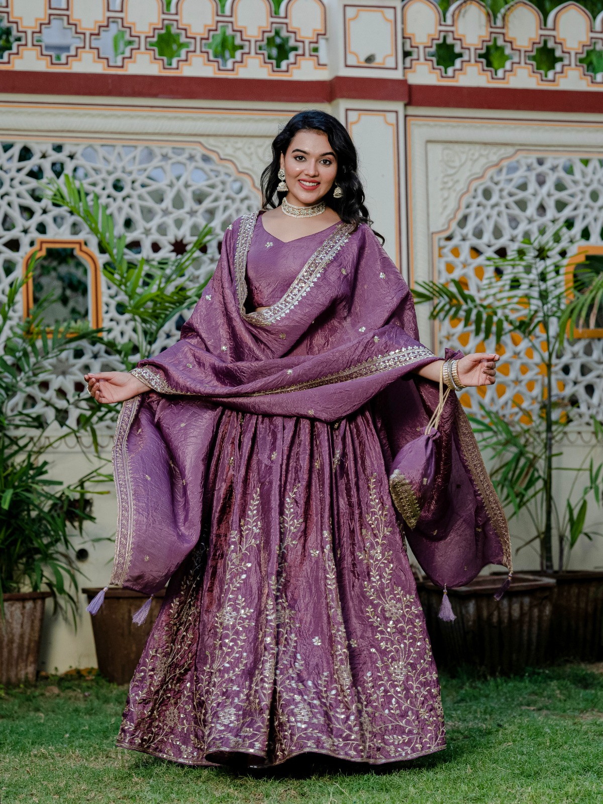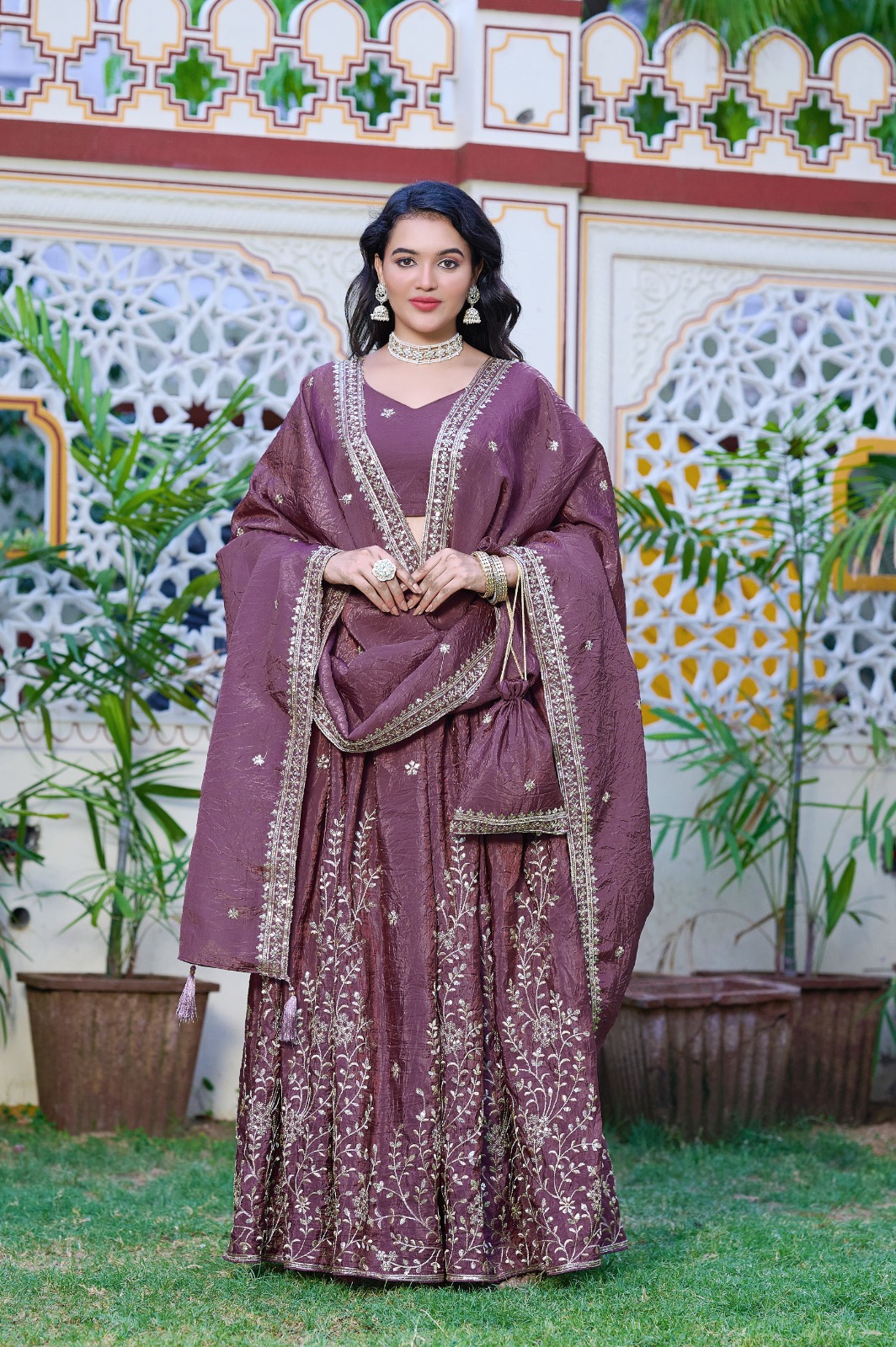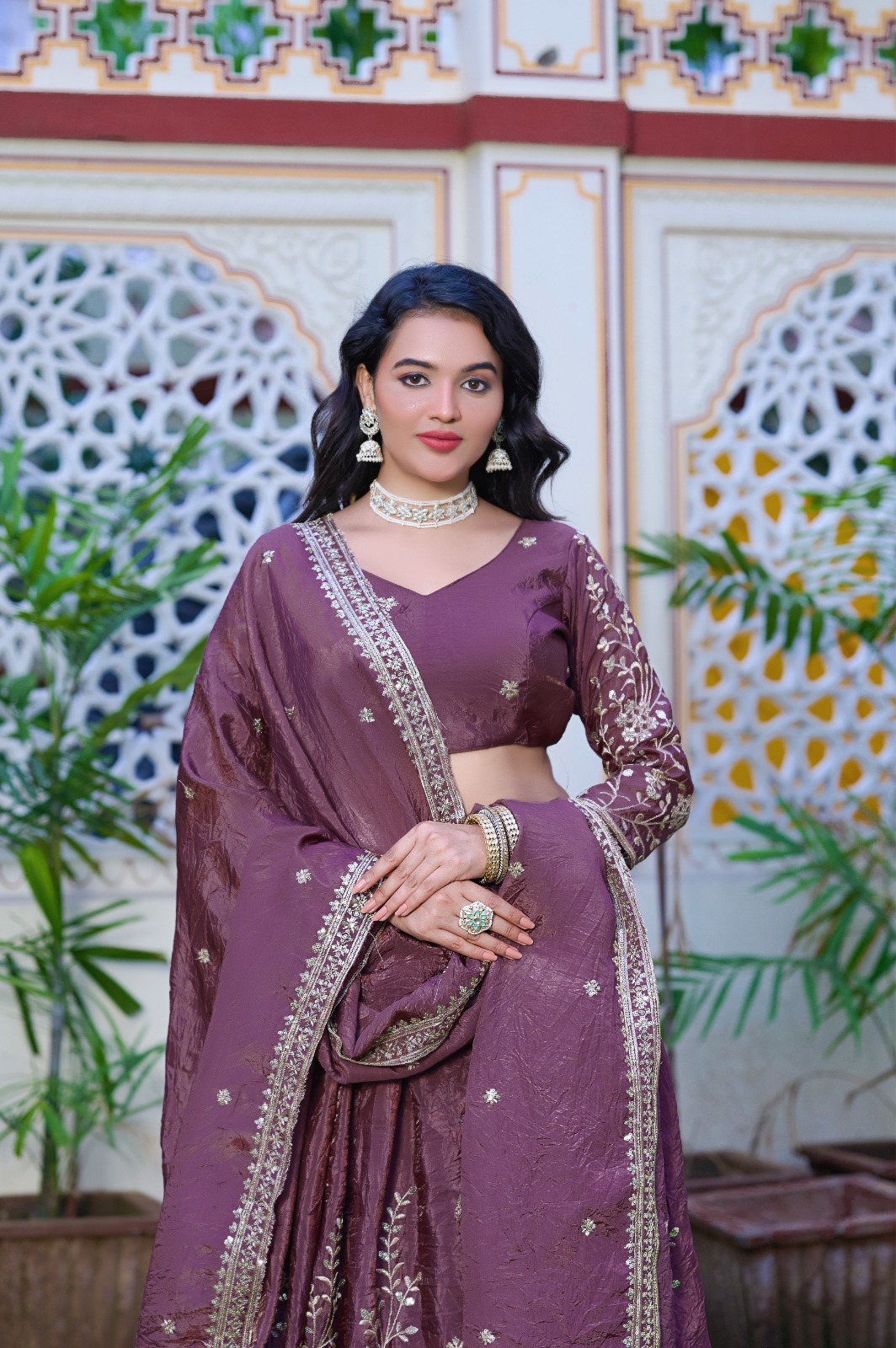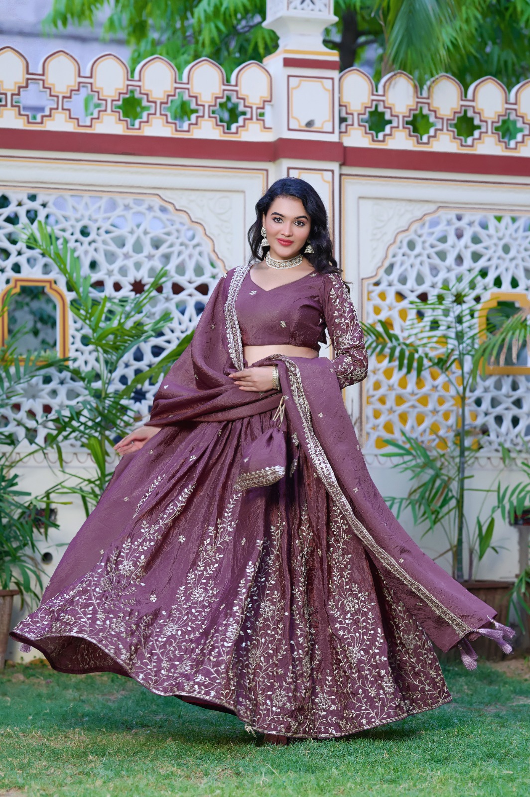 Onion Pink Crush Lehenga With All over Sequins & Thread Embroidery.